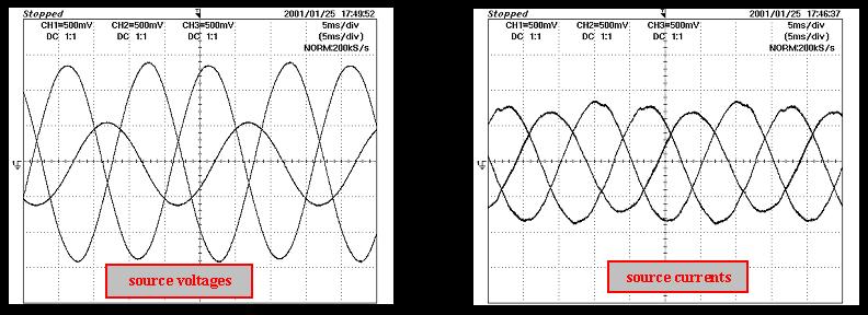 The proposed active filter works properly also in the case of voltage non idealities, like the voltage unbalance and the low order harmonic distortion. A reliable Three Phase Locked Loop (TPLL) recognizes the fundamental positive sequence of the source voltage also in the worst cases of voltage harmonic distortion. Under these conditions the APF absorbs sinusoidal and balanced currents from the source, that are in phase with the corresponding fundamental positive sequence component of the source voltages. |