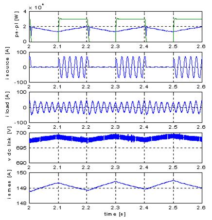 The developed regulation structure for active power filter can be usefully employed in combination with other structures connected to the dc link bus. These structures are static converters capable to exchange active power between an energy storage device or an energy source and the dc-link. Throughout the inverter this active power can be easily transferred to the grid. |